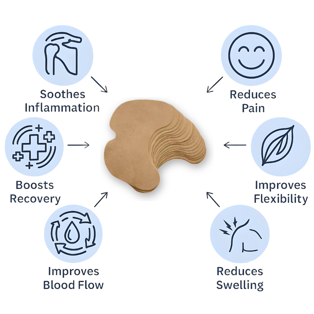 Each patch contains 9 natural, science-backed ingredients that target pain and inflammation: Wormwood, Capsaicin, Borneol, Radix Aconiti, Saffron, Cinnamon, Ginger, Camphor, and Menthol. Together, they reduce inflammation, block pain signals, improve circulation, and support recovery.