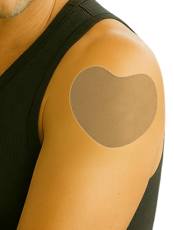 Clean and dry the painful area. Peel off the protective film and place the patch directly on your shoulder joint or sore area. Press firmly for 5–10 seconds. Each patch provides up to 12 hours of relief.
